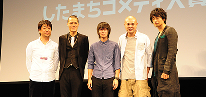 審査委員さんのコメント! 吉田大八:(入選した作品に対し)良い意味で裏切られました。コメディ映画というと、面白い映画ですということなんで、コメディ映画を初めてのお客さんに見せるっていうのはすごく勇気の必要なことだと思うので監督のみなさんを尊敬します。お世辞抜きで、どれもレベルが高く、審査する上ですごく迷いました。 洞口依子:楽しかったです。どうもありがとうございました。勝者の方たち(受賞者)は、これからも勝ち続けなければいけないようなことも待っていると思います。「負けるが勝ち」という言葉もありますので・・。これからも楽しい映画作りを頑張ってください。 女優目線から言うと、大賞に俳優部門があっても面白いのではないかと思いました。 辛酸なめ子:今日はいろんな作品を長時間観させていただきましたが、長く感じない程どれも面白かったです。いろんな種類の笑いがあって、免疫が活性化しました。去年よりレベルが上がっている気がします。 いとうせいこう: 審査の時、審査員それぞれ2作品を選んだのですが、全員の2作の中に(グランプリを受賞した監督)破れタイツの作品が入っていました。特に女性達から非常に高い評価を受けていました。みなさん本当に素晴らしい作品ばかりで、今回選ばれないことも全く悪いことではありません。素晴らしいことだと思っています。今日来てくれたみんな(各作品の監督)もそれぞれの作品について話し合って、お互いに面白いコメディ映画もっともっと造り出せるように私含めみんなで頑張っていきたいと思います。今日は本当にありがとうございました。 |