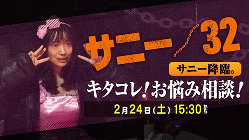 昨年8月、キャプテンを務めるNGT48・並びにAKB48グループからの今春卒業が決定し、卒業後女優としての活躍を誓った北原里英が女優業を本格始動する第一弾作品、映画『サニー/32』は公開中。 この度ライブ配信プラットフォーム「SHOWROOMショールーム」において、2月24日(土)14:40〜「スペシャルトークショー&サニー降臨。キタコレ!お悩み相談!」の配信が決定しました。 NGT48北原里英グループ卒業発表後初の主演映画『サニー/32』の公開を記念して実施する、本編上映後のスペシャルトークショーの模様を緊急生配信が決定しました。 そして、その後なんと!SHOWROOMに〈サニー〉降臨。 劇中さながらサニーの「キタコレ!」シーンを、まさかの再現・・・!?視聴者からのお悩みを聞いて、北原里英<サニー>がその場で答えます!その模様をSHOWROOMにて独占・生配信! 当日は、北原里英さん(NGT48)のほかに、白石和彌監督も出演。 |