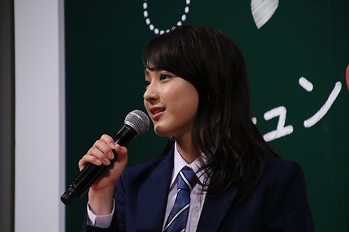 壇上では、役衣装の制服を着た平野さんと平さんが、“学校の教室”のようなセットで放課後トークを展開しました! 映画『honey』公開直前イベント |