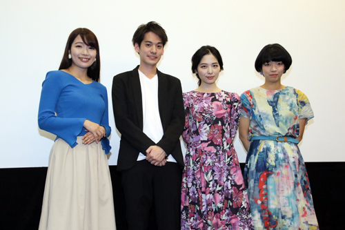 周囲には“女優”として見栄を張りながらも、鳴かず飛ばずな毎日を過ごす絵梨子。 ある日、疎遠だった姉の訃報を受け帰郷した絵梨子は、姉が葬儀で参列者の涙を誘う「泣き屋」の仕事をしていたことを知る。その仕事の真の役割を知らぬまま、絵梨子は女優ならば簡単にできると思い、「泣き屋」を始めてみるのだが…。 と言う作品。 大きな拍手の中キャストと監督が登壇 藤村監督:とても感激しております。本作は2年前撮影しまして、その時から劇場公開をしたいなと思いつつ、なかなか・・・やっと今日劇場公開。その特別な日を皆様と一緒に共有できてうれしいです。 久保さん:ありがとうございます。2年越しの劇場公開!控室で皆で円陣を組んで、その時にスイッチが入っちゃって・・。二年前、私自身悶々としてる時にこの作品で前を向くことが出来たとても大切な作品です。こんなに多くの方に観ていただく機会が出来たこと光栄です! その久保さんの彼氏役の倉沢さんは とそう見られれば役者冥利的な発言。 そして、久保さんが演じた絵梨子のライバル役の吐山さんは と、ウォーリー的な見どころ?を紹介。 |