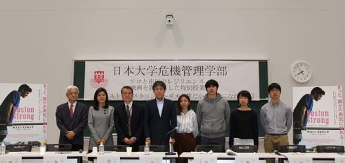 映画の上映後に実施されたトークイベントには、日本大学の危機管理学部の安倍川教授と金教授、事件当時ボストンにいた医師の李氏、そして危機管理学部の学生約100名が参加し、熱いディスカッションが行われた。 事件について 上原選手:球場から空港への移動中のバスの中で知った。(テロ)場所が球場から1マイルの場所だと知って、もしかしたら僕たちも巻き込まれていたかもしれないので、凄い怖かった。犯人も逃げていたので外出禁止などでボストンの街から人がいなくなって、ほんとに映画の世界のようなことを体験して怖かった」と当時の心境を語り、“ボストンストロング”という言葉については「街中や球場に大きく張り出されていたり、あれがきっかけでみんなでもう1回強くなろうと、チームの選手だけでなく街全体が動きました。 と振り返った。本作の主人公ジェフ・ボーマンとは 上原選手:彼が始球式で球場を訪れた際に握手しました。実話ですからね!映画の中で観ると、(ジェフ・ボーマンは」当時の彼女、今の奥さんの支えがとても大きかったんでしょうね。彼女の一言一言が突き刺さっている。助けてくれる人の存在はやっぱり大きいです。 と感慨深げ。事件が起きた年にボストンレッドソックスはワールドシリーズを制覇し上原選手は胴上げ投手になったが、大リーグでの9年間で一番の成績を残し 上原選手:優勝パレードのときにみんなに“ありがとう”と言ってもらえたのが嬉しかった。 と笑顔をのぞかせた。 ジェフ・ボーマンと同様にボストン市民に勇気を与えた上原選手のコメント動画に、学生からは 「ボストン復興の立役者となった上原投手や映画の主人公のジェフ・ボーマンは毅然とした態度で立ち向かったんだなと感じました。」 「今まで他人事だと感じていたが、映画やインビューから、とてもリアルで生々しく、ボストンストロングについてより深く理解できた」 「テロを未然に防ぐことを学んでいるが、危機管理は事件が収束しても続くんだと思った」 「映画を観て、上原さんのインタビューを観ると、私たちが想像できない世界や、被害者側の側面をj知ることができた。ボストンの人たちが結束していく様子に感動した」 などの声があがった。 |