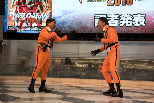 今年で28回目の東京開催、累計来場者数470万人突破の夏休みイベント『ウルトラマンフェスティバル2018』(開催期間:7月20日(金)~8月27日(月) ※8月7日(火)は休業/会場:池袋・サンシャインシティ 文化会館)。前売券発売日の5月12日(土)にサンシャインシティ 噴水広場で開催した発表イベントでは、爆笑問題(太田光、田中裕二)が公式サポーターに就任。ウルトラ6兄弟や怪獣も登場し、「ウルトラマンフェスティバル2018」の見どころを紹介しました。
