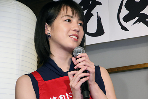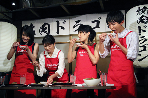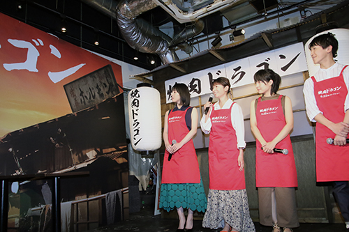 コラボ店に現れた4人は焼肉ドラゴンのエプロンを付けて登場!