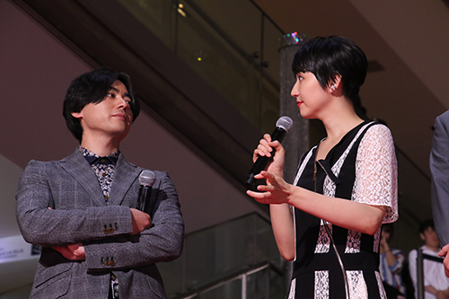 表参道ヒルズの大階段にひかれたレッドカーペット。 その後、大階段を全員で下りトークイベントが行われました。 「勇者ヨシヒコ」シリーズなどで、もはや福田組といっても過言ではない山田さん・・・と言うMCの紹介に、 山田さん:え!?この二人でしょ!福田組と言ったら・・・ 山田さん:いつも通り楽しい現場でした。仲良く楽しく真面目に頑張ってます。 ムロさん:まさにご褒美。ハワイでは撮影時間の制限もあったので、その中で集中して撮影し、終わったら遊ぶ。ハワイの空気を感じて、食べる、飲む。それが毎日できて楽しかった~。