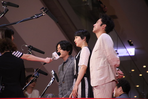 公開を前にお披露目をしたいと、完成披露では欠席のムロさんも出席して、東京の表参道ヒルズにてレッドカーペットセレモニーが行われ、主演の山田孝之さん、長澤まさみさん、共演のムロツヨシさん、佐藤二朗さん、勝矢さん、太賀さん、山崎紘菜さんが参加しました。でも、今回は福田監督が欠席(T_T)。