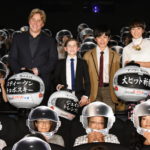 EVENのメンバー、武人役の桜田通(Vo)さん、涼役の栗原吾郎(G)さん、充役の才川コージ(B)さん、快役の坂東龍汰(G)さん、春雄役の櫻井圭佑(Dr)さんがステージに登場し、『EVEN 座談会』が行われた。まずは、ボックスから質問引きメンバーが答えるトークコーナーが進行していく。 “映画『EVEN〜君に贈る歌〜』のみどころ“しりとり!”に挑戦”というお題では、“君に贈る歌”の“た”から5人でしりとり作文をすることに。 栗原さん:ネットでバズれ! と声を上げると、生中継していたのがニコニコ生放送なので、 桜田さん:そこはニコニコ動画だろ!(笑) とツッコミを入れる場面も。このように和気あいあいとした楽しいトークを終えると、いよいよEVENのライブ。 その意気込みを 櫻井さん:今のゆるい素の姿から、バンドで演奏してるときの空気感の差を楽しんでもらえたらと思います。 才川さん:猫が虎になる瞬間を見せます。 栗原さん:(観客の)みんなが、犬が、狼になる瞬間を見せてくれ! 坂東さん:間違えないようにがんばります(笑) 桜田さん:みなさんが、それぞれ好きな曲ができたらうれしいです。(僕らの曲を)しっかりお届けします! メンバーがステージに揃い、桜田がマイク、メンバーが楽器を手にすると、熱い思いの詰まったロックチューン「フェロウ」からライブをスタート。 と語り、デビューシングル曲「アイノウタ」を披露。
