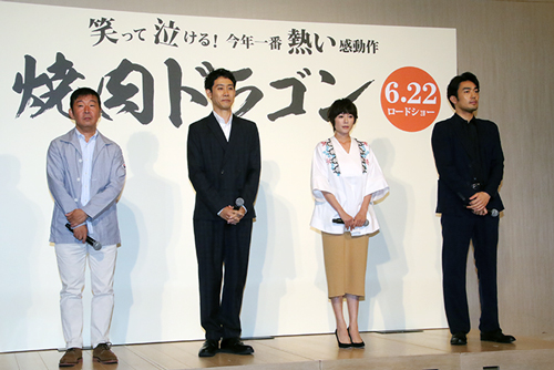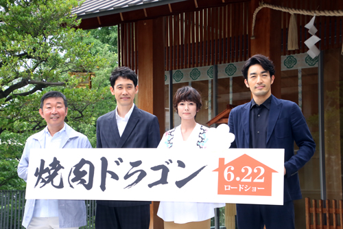 この度、公開がついに翌週に控える6月13日(火)に、神楽坂・赤城神社にて長女静花役・真木よう子さん、哲男役・大泉洋さん、長谷川豊役・大谷亮平さん、鄭義信監督が映画『焼肉ドラゴン』大ヒット祈願イベントを行いました。