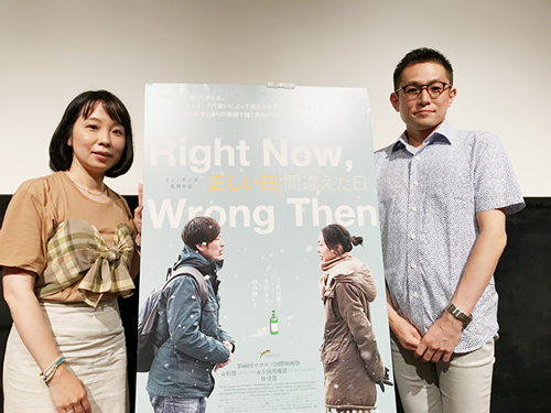 よしひろさん:登場人物に監督自身を投影するウディ・アレン方式。ホン・サンス映画には脚本がなく、いつも3行くらいのプロットだけを見せて出資を募るそうなのですが、それではなかなか集まらない。なのでどこかで腹をくくってある種自主映画的に撮っているからなんとか作れているんです。 とホン・サンス映画の製作裏話を披露。これを聞いて 辛酸さん:でも本人が投影されている監督がすごく褒められるじゃないですか。有名というだけでは言い足りないですね…みたいなことを言われたりして。それってどういうことですか? と疑問を投げると、 よしひろさん:自己顕示欲ですよ~。これまで数々のイケメン俳優と付き合ってきたキム・ミニが、なんでホン・サンスと?と思うんですが、俳優を立てて立てて、俳優の才能に頼って頼ってという監督なので、キム・ミニに『私がいないきゃ!』って思わせたんでしょうね。 とも語った。 辛酸さん:キム・ミニは、ホン・サンスのミューズとして生きたいと思ったんでしょうね…。 とホン・サンスとキム・ミニの運命の出逢いに感慨深い表情を浮かべていた。 最後に・・・ よしひろさん:『正しい日 間違えた日』を観ると、ホン・サンスとキム・ミニがどう惹かれ合っていったかが良く分かります。キム・ミニがすごく可愛く撮れているんです。それから、これまでのホン・サンス作品には起承転結がなく、オチもあまりないというものが多かったのですが、『正しい日 間違えた日』はしっかり物語になっているんです。これまでのホン・サンスっぽくない。それもキム・ミニがいかに特別かを物語ってますよね。 辛酸さん:この映画、雪が降っているシーンが出てくるんですけど、今日はとても暑いので、映画で体感を冷やしてください。 と、トークイベントは終了したのでした。 『正しい日 間違えた日』 運命的に出逢った男女が、「タイミング」の違いによってたどりつく、2つのラスト。