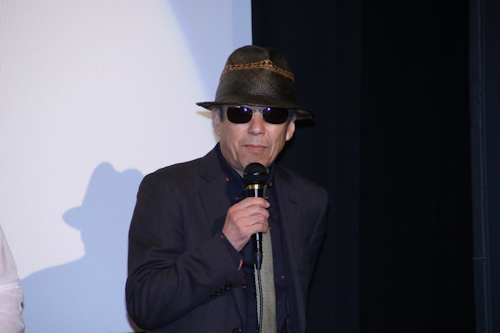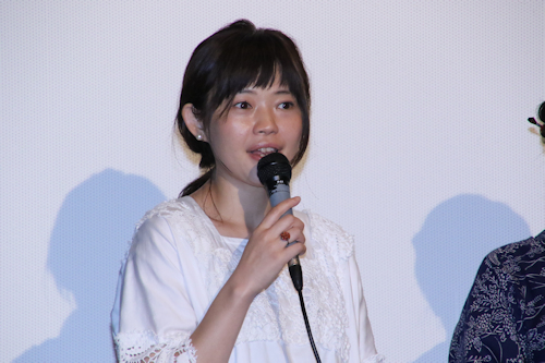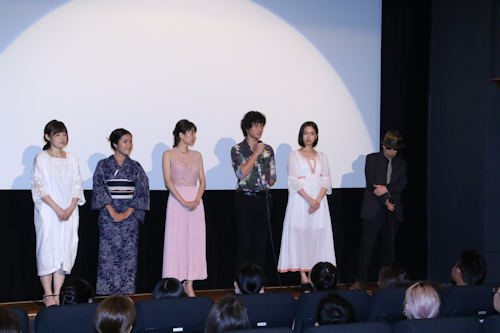 温かい拍手の中、登壇するキャストと監督。![]() 安藤さん:どうでしたか映画?(大拍手)20代のころ「ストロベリショートケークス」から矢崎監督とは公私ともに仲良くさせていただいていて・・・。不思議で素敵な映画です。 そして、この二人の女優さんがいなければできなかった作品です。お二人に拍手を(大拍手)。 と、ねぎらう安藤さん。 永さん:暑い中足を運んでいただきましてありがとうございます。皆さんの表情を見て少し安心しました。この作品に携われて宝物のような時間を過ごせて、皆さんがどのように感想を持っていただけるか楽しみにしてきました。多くの方に見ていただけて幸せです。 松田さん:すごく不思議な感覚の映画。多くの人たちに支えられながら一歩一歩作った映画なので、公開できて嬉しいです。皆さんがどう思ったか一人一人に聞きたいぐらいの気持ちです。 ストリッパー役の有馬さんは 劇中写真を撮っている中村さんは