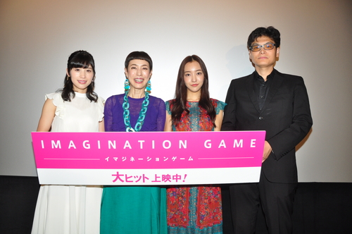 公開初日を迎え、W主演の久本雅美さん、板野友美さん、共演の仙石みなみさんと畑泰介監督が登壇して初日舞台挨拶が本日、7月28日(土)に、ヒューマントラストシネマ渋谷に行われました。 舞台挨拶では、撮影時のエピソードは勿論、タイトルに掛けて、イマジネーション(想像)して、現在とは違う人生を歩んでいるとしたら、若い頃の自分にアドバイスするとしたら?などの質問をぶつけました。また、監督から初日を迎えたサプライズとして、久本さん、板野さん、仙石さんには感謝の気持ちを込めて、花束贈呈のサプライズがおこなれましたが、何故か、久本さんだけ、“パンティ”花束がプレゼントされました。 『イマジネーションゲーム』初日舞台挨拶 |