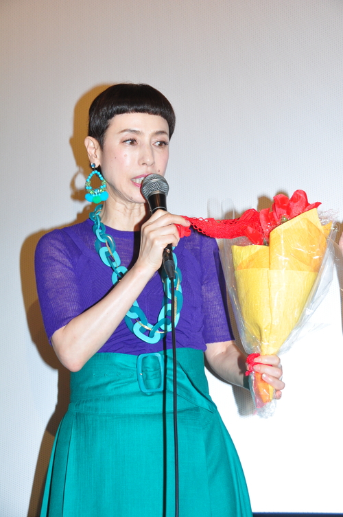 久本雅美さん:私も六十になって、友美ちゃんと一緒に初主演ということで、ネット社会のいま、女性かリアルに生きていく中でいろんな思いがあるということを監督が映画にしたいということで、出させていただきました。楽しんでいただけましたか?(客席から大きな拍手) 板野友美さん:(観客が)見た後の舞台挨拶は初めてで、みなさんの顔色を見ながら、どんな感じだったのかな? とうかがっています。私も大好きな作品で、多くの背中を押せる映画になればと思います。 仙石みなみさん:初日を迎えて、やっとみなさんに見ていただけたんだと思うと胸が高まっています! 畑泰介監督:台風が来ている中、初日に来ていただいて本当にありがとうございます。ようやく初日を迎えて、台風が来る中を来ていただけて…みなさんの顔を忘れないように見て、帰りたいと思います! 初日を迎えての気持ち 久本さん:(話し始めようとすると、マイクが前歯に当たって)あいたっ! すごいですねぇ。自分の前歯には勝てないです(苦笑)。本当に楽しい現場で、私も友ちゃんも役に対する強い思いがそれぞれあって、私は一切、「久本雅美を出すな」ということで、非常に怖い、複雑な役をさせていただいて、自分でも楽しく新たなもの感じました。みなさんに早く見ていただいて、どう思ったか知りたい気持ちでいっぱいだったので、公開にこぎつけてよかったです。今日、実は後ろでみなさんと一緒に少し見せていただいたんですが、最後の「ババア!」ってところ、もっと笑ってほしかったですね(笑)。みんな「なるほど」と納得してたでしょ…ちょっと! 気遣って!! 深く傷ついています(苦笑)。でも、大きな画面に自分が出てくるだけで感動的でした。 板野さん:(観客に)どうでしたか? (大きな拍手がわき起こり)ありがとうございます。 (見る前に)想像していたのと違ったんじゃないかと思います。 久本さん:入浴シーンは初めて? 板野さん:初めてです。 久本さん:みんな、嬉しかったんじゃない? (カメラが)足元から行くのが素敵でしたけど、中には私(=久本)かな? と思った人もいたんじゃないかと(笑)。 板野さん:結構深い映画で、このシーン、どういう意味? というシーンがたくさん盛り込まれているので、2回、3回と見ていただいて、気づく部分もあると思います。 仙石さん:役柄的には小生意気で、上司の真紀子に対しても生意気な態度でぶつかるので、最初は緊張して「どう演じよう?」と思ってたんですが、真紀子さんがものすごい剣幕で怒ってくださって、私も「負けないぞ!」って気持ちでできました。撮影のスタートがかかるまではいつもの明るい久本さんなんですけど、スタートがかかると、怖い部長に変わるので、ギャップにおびえていました(笑)。 久本さん:イヤだ! 女優魂見せちゃった? (劇中の怒るシーンで)FAXをドンってやるシーンで、監督に「ヌルい! もっと怖く! もっとキツく!」と言われました。油断すると出ちゃうんだよね、久本雅美が…。歯ぐきを隠すのに必死でした(笑)。 畑監督:(初日を迎えて)ホッとしてます。試写を経ていい感想もいただいてるので、こうして形になってよかったなと思います。何回か見て発見があると思います。10回くらい書き直したシーンもあるので、ミルフィーユのようにいろんなネタが重なってます! |