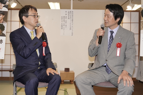 第42回モントリオール世界映画祭フォーカス・オン・ワールド・シネマ部門への正式出品も決定している本作は、9月7日(金)全国ロードショーとなります。 幼い頃から将棋一筋で生きてきた“しょったん”こと瀬川晶司(松田)は、「26歳の誕生日を迎えるまでに四段昇段できないものは退会」というプロ棋士養成機関・奨励会の規定により、26歳にして人生の目標を失い社会の荒波に放り出されてしまう。 そして!この度、本作の公開を記念し、第52回 東急百貨店 将棋まつりにて、羽生善治竜王と瀬川晶司五段による東急百貨店スペシャル対談が実施されました! 第52回 東急百貨店 将棋まつり |