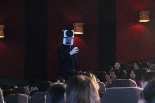 カメラ男がパントマイムしながら映画を盗撮しようと現れると