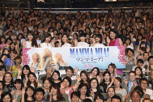 ここで、Little Glee Monsterが再登場し、約4000人の観客を前に「ダンシング・クイーン」をパフォーマンス!Little Glee Monsterの登場と共にミラーボールが回りはじめ、会場一体がダンスホールに。![]() 客席からも次々とダンサーが登場し、会場のあらゆる場所でフラッシュモブが起こりました!迫力あふれるパフォーマンスに、ほとんどの観客が立ち上がるほど大盛り上がり! ![]() ![]() 観客をも巻き込み、思わず歌って踊り出したくなる最高にハッピーな本イベントは大盛り上がりのうちに幕を閉じました。 『マンマ・ミーア!ヒア・ウィー・ゴー』