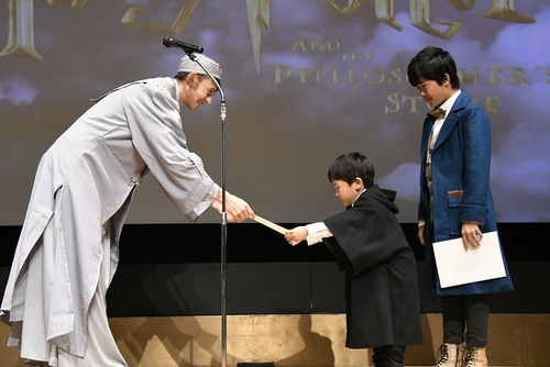 イベントには、鈴木福くん、楽(たの)くん兄弟が生徒役として登場。 「ハリー・ポッター」の大ファンとしても知られる、ハリー杉山さんがダンブルドア先生役に扮し、 お二人に入学許可証を授与しました。