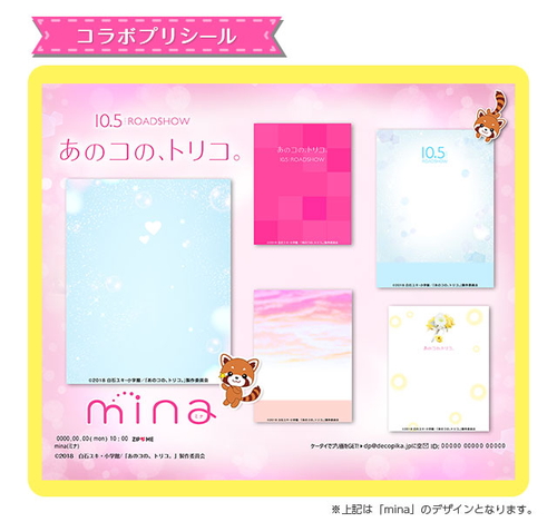 スペシャル感満載のコラボレーション企画となります。 この機会に是非、プリントシール機「mina(ミナ)」&写真加工アプリ 「楽画cute」で映画『あのコの、トリコ。』の世界に入り込み、カップルやお友達同士でドッキドキの撮影を体感してみては。 |