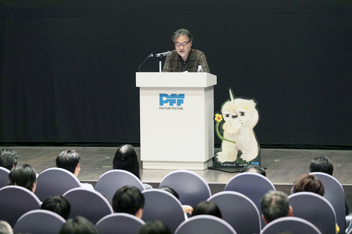 黒沢監督:僕自身も主人公が謎に突き進んでいく映画を何本か撮っています。ただ、恐ろしいので主人公を探偵にしたことはありません! とちょっとしたエピソードを明かしてくれました。この黒沢監督のトークは当初の予定した30分を超えて40分に。熱の入った解説に会場は聞き入りました。なお、今回見逃してしまった人にもまだチャンスが! 『キッスで殺せ』は19日にもう1度上映されます。 なお、この日、「追悼 たむらまさきを語り尽くす」の上映には青山真治監督と仙頭武則プロデューサーが登場。 豪華ゲストが続々と登場して華やかに幕を開けた今年のPFFですが、まだ始まったばかり。 |