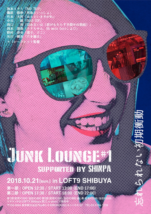 ◆日程 2018年10月21日(日) 第1部:前売 ¥1500 / 当日 ¥1800 チケットは LOFT9 Shibuya 窓口、e-plus にて 9/15(土)12:00 より発売開始 LOFT9 Junk Lounge supported by SHINPA #1 Junk Lounge 公式 Twitter |