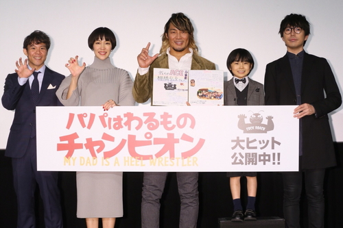 『パパはわるものチャンピオン』が9月21日(金)に、ついに公開を迎え、本日公開記念舞台挨拶を行いました。 本業が多忙なさなか、この映画の撮影のためプロモーション活動を全力で行ってくれた棚橋さんへ、本気のサプライズを敢行!! 撮影中に棚橋さんを支えてきたあるスタッフからの手紙が読み上げられると、これには棚橋さんも我慢できずに号泣!感動包まれた、あたたかな舞台挨拶となりました。