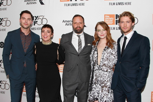 ヨルゴス・ランティモス監督、エマ・ストーン、オリヴィア・コールマンが登場! テイラー・スウィフト、ジェニファー・ローレンスらセレブも駆けつけた! 今最も注目されるギリシャの鬼才、ヨルゴス・ランティモス監督の最新作『女王陛下のお気に入り』が、2019年2月より全国ロードショーとなります。 9月28日(金)から開幕した第56回NY映画祭のオープニング作品として上映され、ヨルゴス・ランティモス監督、エマ・ストーン、オリヴィア・コールマン、ニコラス・ホルト、ジョー・アルウィン、サンディ・パウエル(衣裳)の豪華な面々がレッドカーペット、記者会見に参加しました。 先のベネチア映画祭で銀獅子賞(審査員大賞)、女優賞(オリヴィア・コールマン)のW受賞後のアメリカ初の一般向けお披露目ということで注目されたが、期待通りの大絶賛。 ゲストも超豪華で、エマの親友でニコラス・ホルトとの復縁も噂されるジェニファー・ローレンス、ジョー・アルウィンのガールフレンドとして知られるテイラー・スウィフト、「バトル・オブ・ザ・セクシーズ」でエマが演じた伝説のテニス・プレイヤー、ビリー・ジーン・キングなどの超セレブリティが来場し、「聖なる鹿殺し キリング・オブ・セイクリッド・ディア」の俳優バリー・コーガン、ダーレン・アロノフスキー監督(「ブラック・スワン」)など映画関係者も集結。注目の高さをうかがわせた。 |
