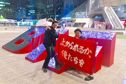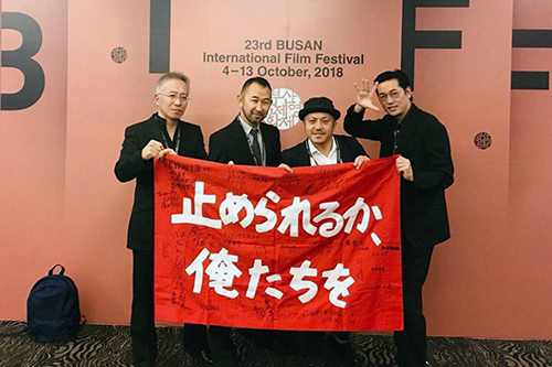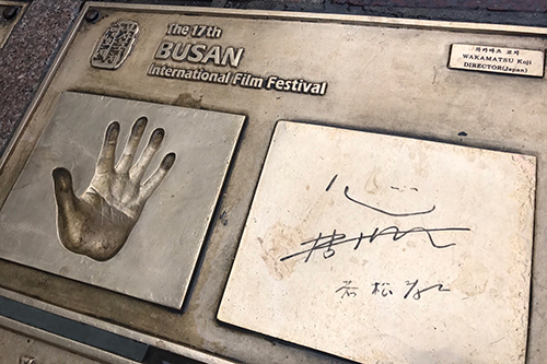 2018 年10月5日 19:30 回上映後 Q&A 井浦新&白石和彌監督登壇 会場:Busan Cinema Center Cinema 2 5 日夜、釜山国際映画祭で『止められるか、俺たちを』の始めての公式上映。 上映前には、恩師である若松を演じた井浦新さんと白石和彌監督が釜山市内の南浦洞にある若松の手形を訪れ、映画の完成の報告。 白石監督:監督、こんな映画作っちゃいました。お前ら、もっとマシな映画作れとか言わずに、成功を祈っていて下さいね。 井浦さんは黙って、若松の手形に自分の手を重ねていました。