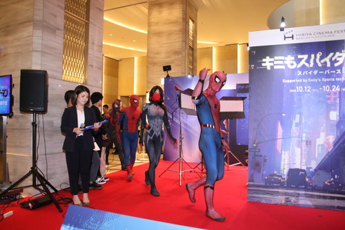 10月12日(金)から11月3日(土・祝)までの期間、東京ミッドタウン日比谷にて「日比谷シネマフェスティバル2018」を開催。10月11日(木)そのオープニングセレモニーイベントが行われました。![]() 「キミもスパイダーマン」撮影&上映会が行われ27人のコスプレーヤーによるスパイダーマンが登場。セレモニーを盛り上げました。 日付:10月11日 |