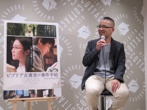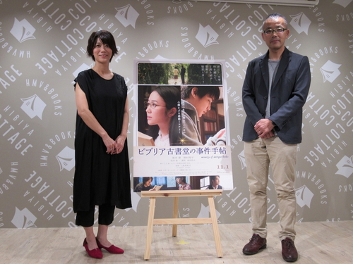 鎌倉の片隅にあるビブリア古書堂。 その店主である篠川栞子(しのかわ しおりこ)が古書にまつわる数々の謎と秘密を解き明かしていく国民的大ベストセラー、三上延・著「ビブリア古書堂の事件手帖」シリーズ。その実写映画化となる『ビブリア古書堂の事件手帖』が11月1日(木)に公開となります。公開に先駆けて、本日10月15日(月)にHMV&BOOKS HIBIYA COTTAGEにて、原作者の三上延先生、そして本作のメガホンをとった三島有紀子監督が登壇してスペシャルトークショーを行いました。