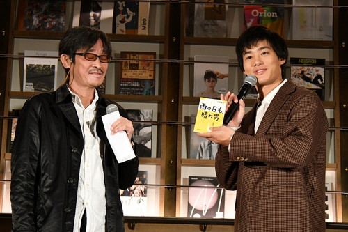 事前に回答したアンケートをもとに、清水さんがお2人にぜひお勧めしたいという本を紹介。 先ず、黒木さんへ選んだのは【誰も知らない偉人伝】歴史・実話ものを読みたいというアンケートを元に選ばれたこの本に対して 黒木さん:歴史が苦手だったので、どうにか出来る本があるといいなと思っていたので楽しみです。早速今日から読みたいと思います! と嬉しそう。また、「本をもっと早く読むにはどうすればよいか」という黒木の質問に対して、 清水さん:読んでいるときに黙読しちゃっていると思いますが、究極は頭の中で音読しなければすごく早くなります。簡単なのだと目の動きを早くしようと意識するとそれだけでも早くなります。 とアドバイスし、 黒木さん:早速やってみます! とやる気満々なお返事。 次に野村さんに対して清水が選んだのは【雨の日も晴れ男】という小説。あまり本を読まない人、特に若い男性にお勧めの小説ということでこの本が選ばれたと聞いて 野村さん:僕っぽいタイトルですね。めっちゃ楽しみ! とテンションが上がった様子で答えた。 続いて、事前に共演者である成田凌さん、夏帆さん、東出昌大さんから答えて貰った「今どんな分野に興味があるか、そして克服したいと思っている悩み」を元に清水さんが選んだ【生きる】【セールスの絶対教科書】【国境のない生き方】の3冊が登場。 それぞれの本の内容を説明された黒木さんと野村さんが、どの本が誰に対して選ばれたのかを推理する流れに。両者悩みながらも【国境のない生き方】は絶対に“成田凌”だと断言したが、正解は“演劇と心理学に興味あり”とアンケートに記入し選ばれた【セールスの絶対教科書】だった事に2人は、先程の回答と同じく「やっぱり成田凌は謎だね」と会場の笑いを誘った。 多くの読書通を唸らせた【生きる】は読書家でも知られる東出昌大さん、【国境のない生き方】は<いろいろな国を旅してみたい>と答えた夏帆さんに向けた本と正解発表があり、推理の結果、黒木さんが3問中0問正解、野村さんは3問中1問正解と、野村さんの勝利となった! 最後に・・・ 野村さん:僕自身、この役がピッタリだと思っています。公開まで楽しみに待っていて下さい! 黒木さん:本が過去と現在、人と人を繋げていく様子が丁寧に描かれています。この映画を通して色々な繋がりが出来るといいなと思います! と思いを語り、イベントは幕を閉じました。 |