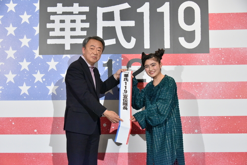 井上さん:私はこの選挙制度が変わらない限り、同じことが繰り返されるのではないかと思います。 と、すると 池上さん:今選挙するとトランプさんが圧勝しますね。2020年までに民主党から素晴らしい対立候補が出てきたらいいですけど、そうでもなければトランプ大統領再選の可能性がありますよね。 と話した。ポンポンと質問を投げかける井上さんに、 池上さん:すごいですね〜。将来有望ですね。びっくりしました。ここまでちゃんとお話されるとは。”額賀派の分裂”という言葉が出てきた段階でしびれましたね。まあちょっと渋いけど。(笑)日本のことよく知っているわけだから、アメリカのことにも興味持つんだよね。 との発言が。そこで、井上さんをミレニアル世代代表として『華氏119』の宣伝隊長に任命することに!”「華氏119」宣伝隊長”と書かれたタスキが池上さんから井上さんに渡された。タスキを渡されて は、力強く意気込んだ。 |