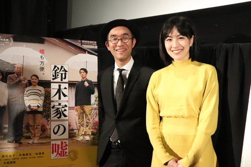 まずはじめに『鈴木家の嘘』がデビュー作となった監督へ脚本を書いた経緯をきかれると 野尻監督:脚本は書くのに4年ほどかかりました。橋口亮輔監督の『恋人たち』の助監督を務めていた当時、オリジナルの脚本は素晴らしいと感じたんです。それで自分も書こうと思い、映画化に至りました。 本作は監督の実話をベースにしていることでも注目されている。それについて 野尻監督:僕の兄が自死してしまったことは事実ですが、そこから始まる家族の話を作りたかったんです。独りよがりの映画にはしたくなかったですし、エンターテイメントも取り入れたかったので嘘をつくことで物語が広がっていくように書きました。 と明かした。 木竜さんは4日間のワークショップを経て本作のヒロイン役として抜擢された。その理由について 野尻監督:(木竜は)あまり最近いないタイプの女優でした。映画『Wの悲劇』の薬師丸ひろ子さんのように、純朴さとスター性を兼ね備えた雰囲気を持っていたんです。 という言葉に、 木竜さん:ありがとうございます。すみません。。。。 と照れた様子で返した。 |