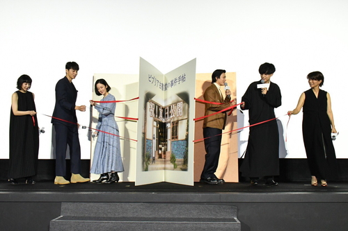 イベント終盤のフォトセッションでは、劇中で主人公・栞子が祖父から受け継ぐ、まだページが切り落とされていない貴重なアンカット本が出てくることに因んで、ステージに巨大アンカット本が登場!キャストと監督全員でテープカットならぬ、“アンカット本カット”が行われ、公開初日の晴れ舞台を観客と共に盛大に祝った。