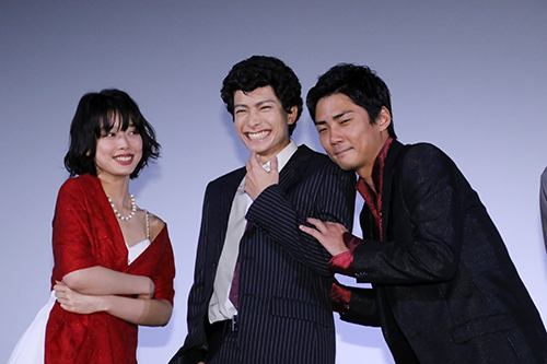 ここで面白ハプニングが発生! 吉倉さんの装飾品が落ちてしまって、拾って手渡す毎熊さん!これに対して 小澤さん:毎熊さん!それ俺が拾うところです!挽回したかったのに! 毎熊さん:台本読んで悪い奴だなと思いながら、でも、映画の中でしか悪いこと出来ないんで、楽しみました!(笑)今回は悪いことを悪気がない男、とことんピュアにやったらどうなるかと。演じてみました!それに「オクシュリ」の力もあるんで。(可愛い!の声) 次に初めて方正がスカウトした女の子役の財田さん(←“たからだ”と読む)は 小澤さん:俺が拾うって!(再度床に置いてもらって)撮影今ですよ! 上司役の矢柴さんは 矢柴さん:小澤さん単独主演映画と言うことで、引き立てるために、あえて背を低くしました!(笑)小澤君、たぶん童貞だし! |
