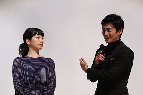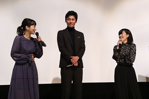 観終えたばかりのお客様の前にキャスト、監督が登場!