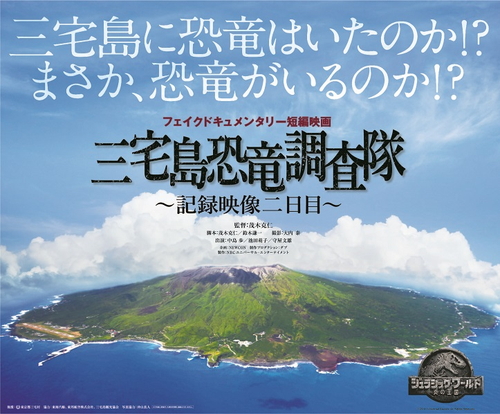 そして!NBCユニバーサル・エンターテイメントは、 「三宅島に恐竜がいるのか!?」というテーマのもと、11月23日(金)から3日間にわたり 「恐竜調査隊」を三宅島に派遣し真相を調査、その模様を撮影したフェイクドキュメンタリー短編映画『三宅島恐竜調査隊~記録映 像二日目~』を製作しました。 同作品は12月19日(水)JR東海・東京駅(八重洲中央口)のイベントスペースにて 完成披露上映を行い、その後、12月20日(木)午前10時00分より公式サイトにて全世界一斉公開いたします。 |