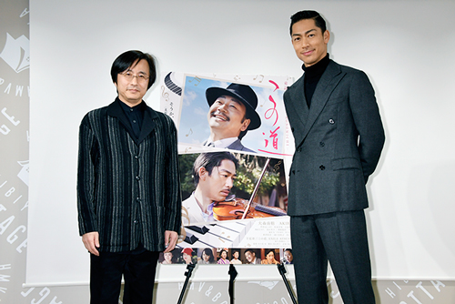 トンデモナイ甘ったれで女たらしでありながら、どこか憎めない北原白秋を演じるのは、大森南朋。そして、日本初のオーケストラを創設し西洋音楽の普及に貢献した音楽 家・山田耕筰役に、マーティン・スコセッシ監督『沈黙―サイレンス―』でハリウッドデビューも果たしたAKIRAが熱演。 「この道」、「からたちの花」、「ペ チカ」、「赤い鳥小鳥」…誰もが口ずさむことができる童謡の数々。それまで、ドイツ民謡に日本語の歌詞を乗せた童謡しかなかった時代に、日本人による日本人のための新しい「歌」を誕生させた二人の天才を、佐々部清監督が丹念に描いています。 そして! この度、本日1月10日(木)に映画公開直前イベントとして、山田耕筰を演じたAKIRAさんと音楽を担当した和田薫さんが登壇するスペシャルトークイベントが行われました。 |