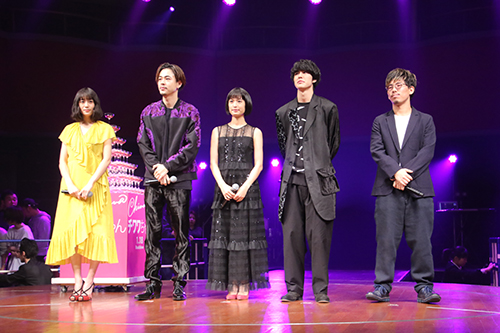 舞台上には、劇中で主人公ミキたちが3日間で600万円を使い果たすほどのパーティーをした!!!というエピソードをイメージして超豪華なシャンパンタワーが鎮座する会場はクラブ仕様!!![]() ![]() そして!主題歌「僕らの時代」を担当する新世代バンド「Have a Nice Day!」(以降:ハバナイ!)のライブからイベントはスタート! ボーカル:浅見北斗さん、 そして、ライブでは 「マーベラス」 の五曲を披露! 最後には映画ファンも一体に! 浅見北斗さん:映画ヒットするといいね!メチャメチャエモい曲を披露落ちになれる映画。孤独や虚無感だったり。観てて恥ずかしくなる人も、上がる人もいるだろうし落ちる人もいると思う!素晴らしい映画です! 主題歌の「僕らの時代」の終わりに、門脇麦、成田凌、寛 一 郎、吉田志織、二宮健監督がランウエイを歩いて登場! トークイベントへ移行! |