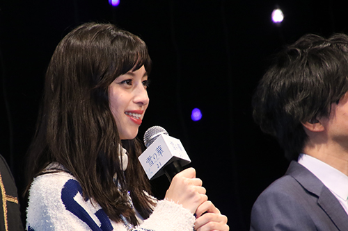 続いて高岡さん、浜野さん、田辺さんの順で登壇。 其々の自己紹介の後、フィンランドプレミアから帰国したての橋本監督は、現地でスタンディングオベーションとなったことについて と明るい報告。 と正直な感想を告白。 とフィンランド語での挨拶を紹介し、撮影中のエピソードを披露。 |