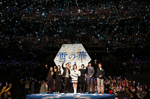 この後、本作の主題歌を歌っている中島美嘉がサプライズ登壇。![]() 中島さん:一番最後にこれはすごい、というセリフがありそこでウルっとしてしまいました。 ![]() と本作を見て涙したと語った。 舞台挨拶の最後には・・・、 中条さん:美雪と悠輔の話ではありますが、この映画は家族の話でもあります。家族や大切な人と一緒に見て、温かい気持ちになってください。 登坂さん:キャスト、ス タッフの熱い想いがこもった作品。より多くの方々に届いてほしいし、何か一つでも受けとっていただき愛して いただければと思います。 そして、フォトセッション!「この冬は、雪の華!」コールで舞台挨拶が終わり・・・・ |