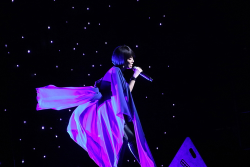 青と白のペンライトで照らされる中、割れんばかりの大歓声に迎えられ登坂さん、中条さん。![]() 階段で登坂さんが中条さんに手を差し伸べると。黄色い歓声?悲鳴? ![]() ![]()