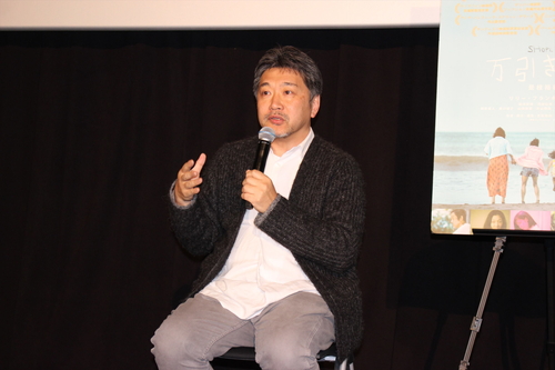 Q,登場人物の感情表現がとてもリアルで驚きました。リサーチは綿密にされたのでしょうか? 是枝監督:作品よっては丁寧に行いますが、今回に関しては、していないわけではないけれど、ディティールはほとんど想像です。それでも、児童相談所や養護施設には足を運びました。そこで僕らの前で突然「スイミー」を朗読してくれた女の子がいて。それがとても印象に残って、シーンに取り入れました。そのように受け取ったものを作品の中に返していく、という作業をしています。 Q,観客に投げかけたいテーマなどがある上で、作品つくりをされるのですか? 是枝監督:観客の方に観ていただく以上、そういったことを考えないわけではないけど、ドキュメンタリーを撮り続けていた自分の根底にあるのは、もう少しそのテーマについて掘り下げてみたい、ということです。そのモチーフに対して、切実なものとして向き合えるのか、そういったことで作品に強度が出ると思います。 ティーチインを終えて、最後の挨拶 是枝監督:今回は「凱旋上映」ということですが、「凱旋」とつけるのは早いだろって思うんだけど(笑)だけど、こうやって長く公開をしていただけることはとても有難いです。(アカデミー賞)ノミネートしたことについては、特別な想いはないのですが、これまでヨーロッパとは接点はあったけど、今回はこれまで自分がタッチしてこなかったところなので、ここにいていいのかなという想いはあります。先日、アカデミー賞の昼食会というものがあったのですが、レディ・ガガと写真を撮っているんだから不思議ですよね(笑)でも、英語を話すことができないので、話せたらもっと相手の映画についても語ることができるのにな、なんて残念に思ったりもしました。 |