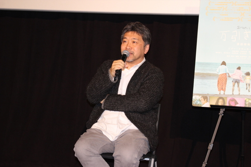 Q,松岡茉優さんのファンです。是枝監督からみて、彼女はいかがでしたか? 是枝監督:他作品などでみていて、ずっと注目していました。作品全体の為に自分がどう演じるのかを考えていて、作品世界の住人になることのできる女優さん。相手によって柔軟な演技をすることができる。あの年齢で、樹木さん相手にそんなことができるひとはそうはいないと思う。僕も今回でファンになりました(笑) Q,印象に残っている海外の方の反応は? ひけらかすわけではないけど、お陰様で、海外で多くの賞をいただいています。自国と比べてみても、どこにでもある問題だと感じたようで、だからこそ、世界で広がっているのかなと感じています。役者についても良い評価をいただいていて、役者のアンサブル賞というのもいくつかいただいているのですが、それがすごく嬉しいですね。 Q,じゅりが母親に強く当たられるシーンが印象的でした。子役の表情をどう引き出すのですか? 是枝監督:あれは、母親役を演じた片山(萌美)さんが素晴らしいんですけど、朝、リハーサルに入る前から(佐々木)みゆに怒ったんですね。そしたら、「このシーン、撮りたくない…」と怖がってしまい、午前中は撮影ができなくなってしまったんです。ですが、母親と散歩に行って戻ってきたら、多少はリフレッシュできたみたいで、片山さんも「本当は恐くないよ!」となだめて、再び撮影に入ることができました(笑)あの子は、全体の物語の流れを知らないですし、役と自分の感情が混ざるんですね。なので、そういったことを受け止めながら撮影をしていました。 Q,安藤さんの涙の演技が心に残りました。あのシーンは、どのように撮影したのですか? 是枝監督:前半は脚本がありますが、後半は書いておらず、その場でスケッチブックに質問を書き、それを池脇(千鶴)さんに読んでもらいました。本来は、泣き顔を撮りたかったわけではないですが、あのシーンの撮影中、すごいシーンが撮れたぞ、(本作はフィルム撮影の為)どうかこのままフィルムが落ちないで!と祈りながら撮影していましたね。 Q,カンヌ映画祭でケイト・ブランシェットが、映画祭の総括として 是枝監督:「目に見えない人々」がテーマだと語っていましたが、作品をつくる上で意識はされていましたか?撮りながら、目には見えないけど、存在している声はある、というのは作品の中に沢山残そうというのはありました。でもそれは、カメラマンの近藤さんが、フレームの先に“それ”を撮ってくれた、ということが大きかったと思います。 Q,音楽の使い方についてこだわりがありましたら教えてください。 是枝監督:作品毎に試しているけれど、今回は細野(晴臣)さんに基本お任せしました。脚本を読んでいただいて、ピエトロ・ジェルミの「刑事」が浮かんだと言われたのですが、その時代の音楽を意識してつくってくださったようです。一方で僕は、レオ・レオニの「スイミー」をイメージしていたこともあったので、それを(カメラマンの)近藤さんが詩的に表現してくれたお陰で、細野さんと音楽とが合わさって、幻想的なシーンがいくつも生まれた気がします。