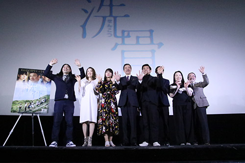 照屋監督:毎年、沖縄で短編を撮っていて、そのロケハンで、『洗骨』の風習が残っている島があって。僕は知らなかったんです。昔は沖縄全土でやっていたそうで、一杯インタビューして。これを映画にしたくなって、短編を先ず撮って。賞をいただいて長編にしました。母の事を思って、描いたらスラスラかけたんです。祖先との命のつながりを感じて作りました。 奥田さんは宣伝活動にいそしんだ作品。 奥田さん:あまたある私の名作ありますが・・・、よくぞ巡り合えたなと。嬉しく思いました。台本読んで監督に会いたいと思った作品でした。 筒井さん:沖縄楽しかったです。でも歴史を知らなかったので調べたりしました。 水崎さんは本当に妊娠してる?と思わせるほどの演技。 水崎さん:今回の作品が役者再スタート。命を繋ぐがテーマで、私が妊娠していることが重要な作品。妊婦に見えないことで映画を壊してしまわないように、撮影期間中お風呂以外はシリコンのお腹付けて役作りしました。 照屋監督:大変だったんです。妊娠騒動。奥田さんと水崎さんが撮影後の食堂でふたりで食べてて、たぶん奥田英二が若い女優はらませて、沖縄に潜伏させてると。みーんな思ってました。誰も声かけられなかったです。奥田さんが似合いすぎ。 水崎さん:奥田さんがお腹触ってくるんで、余計リアルに見えて。 奥田さん:そうですよね。食堂のおばちゃんの目がね。大変でした。 |