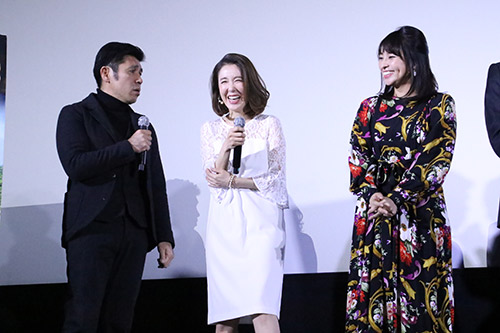 映画の終わりに拍手が沸き起こった本作。 キャスト、監督が登場すると更に大きな拍手で迎える観客の皆さんに、にこやかにステージに立つ皆さん。 ガレッジセールのゴリさんは、今回、照屋年之監督として作成した映画、 と、話す監督。 本作は沖縄で先行公開していて記録的ヒット作「ボヘミアン・ラプソディ」、先週公開され大ヒット中の「マスカレードホテル」などの大作・話題作をおさえ、2週連続で(19日、20日・26日、27日)県内興行収入、動員とも1位を記録、大ヒットスタートを継続中。 照屋監督:本当に嬉しいです! 奥田さん:ようこそ、ありがとうございます。3週沖縄一位と言うことは・・・・・僕がキムタクに勝ったと言うことでろしいでしょうかね。 奥田さん:嬉しいね。 筒井さん:やっと全国公開嬉しく思っています。 水崎さん:昨日初日で、大阪で監督とQちゃんが挨拶してきてくれて。満員だったそうです。とっても嬉しいスタート切れました。 大島さん:お寒いなかお越しいただきありがとうございます。舞台挨拶が初めてなので・・・。皆さんにこの映画広めて下さい。 と、初めて?と思える堂々っプり。 坂本さん:今日は大雪にならなくてよかったですね。それも、お客様のおかげです! Q太郎さん:今回俳優と言うことで登壇しておりますが。。。奥田英二さんには俳優なんだからやるなと怒られますが。卑弥呼さま~。後で怒られておきます。 筒井(真)さん:私もドアの向こうから聞こえてくる拍手にウルウルしてしまいました。 と其々挨拶。 |