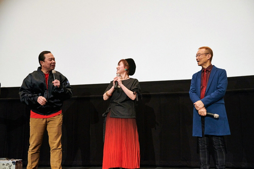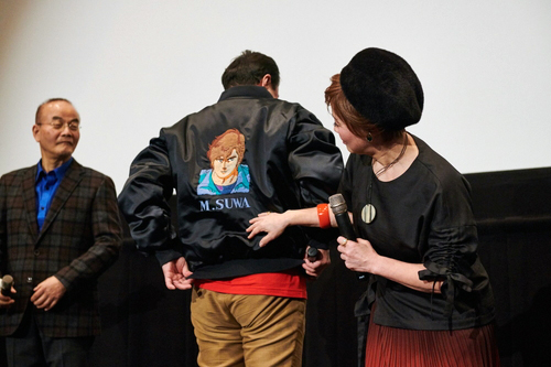 神谷さん:待たせたな。俺を呼んだのは君だろ。 と劇中の台詞を使って挨拶すると、会場は一気に熱を帯びた。 公開から一週間が経ち、周囲からの反応を聞かれ こだま総監督:この業界に携わっている人たちから大きな反響を受けております。 とコメント、現在声優学校の先生として教えているという 伊倉さん:生徒達が尊敬の目を向けてくれるようになりました(笑)鼻が高いです(笑) と笑顔で語った。