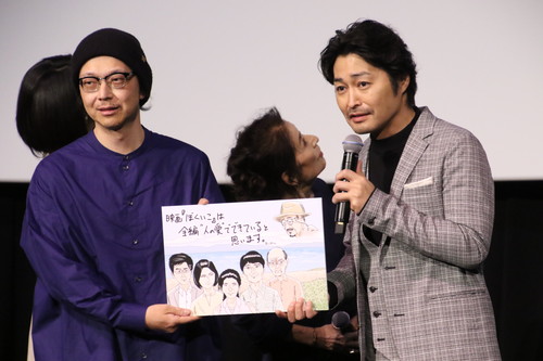 来週2月23日(土)に、主演の安田顕、倍賞美津子、松下奈緒、大森立嗣監督が登壇する公開記念舞台挨拶が行われました。イベントの終わりには原作者の宮川サトシさんが絵をプレゼント! 日時:2月23日(土) |