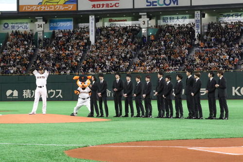 そして3月18日(月)、映画『PRINCE OF LEGEND』に出演する関口メンディーが「読売ジャイアンツ×マリナーズ戦」の始球式に挑みました!さらに関口以外の13人の王子も応援に駆け付け、芸能人最速記録に挑戦する関口の投球をマウンド上で応援しました! 投球:関口メンディー(28)【ガブリエル笹塚】 その他参加者:片寄涼太(24)【朱雀奏】・飯島寛騎(22)【鏑木元】・塩野瑛久(24)【久遠誠一郎】鈴木伸之(26)【京極尊人】・川村壱馬(22)【京極竜】佐野玲於(23)【綾小路葵】吉野北人(22)【天堂光輝】・藤原樹(21)【日浦海司】・長谷川慎(20)【小田島陸】町田啓太(28)【結城理一】清原翔(26)【嵯峨沢ハル】・遠藤史也(23)【翔】・こだまたいち(28)【TAICHI】<計14名> |