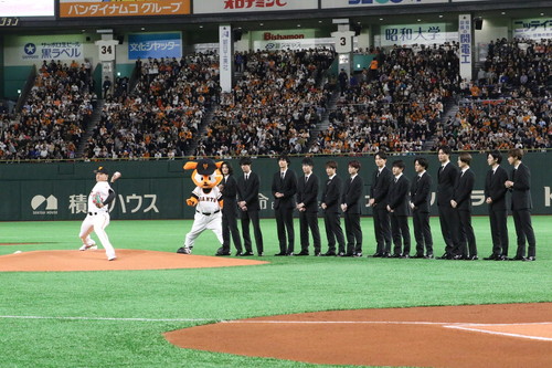 始球式後の取材で関口は、「あまり悔しくはない。」と吐露。ブルペンでは読売巨人軍の菅野智之投手にアドバイスをもらったそうで、 関口さん:メジャーのチームがいるということで、会場の雰囲気がいつもとは全然違う空気感のなか、そのマウンドに立てたことが、本当にありがたかったです。ただマウンドに上がる前に、原監督から「135kmいけるか?」と声をかけていただいて、嬉しくて「140いきます!」と答えたのですが、それでさらに緊張してしまって…。 と、反省ポイントも明かしました。 とにかく今回は、前回の始球式とは空気感がちがったといい、またマウンドで見守った 片寄さん:前回、僕は外から見ているだけだったのですが、今回はマウンドに立って間近でメンディーさんの勇姿を見ることができて、うれしかったです! とコメント。 鈴木さん:メンディーさんの背中がいつもの15倍以上大きく見えました!! と激励し、 佐野さん:マウンドに向かう前に原監督とメンディーくんが会話をしていて、その会話が選手のようだった。 と頼もしい姿をみせた関口を労いました。さらに大学で同級生だった 町田さん:同級生の時はまさか、メンディーが始球式に登板して、その横で自分が応援するという絵は、思い浮かびもしませんでした。本当に誇らしいです。 とコメント。 |
