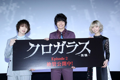 2.5次元俳優の神7のひとり「崎山つばさ」をはじめとする注目の2.5次元俳優陣が挑む映画『クロガラス』。 本作のPart.2が3月30日(土)より1週間限定レイトショーにて公開されます。 昨年の「第69回NHK紅白歌合戦」にミュージカル「刀剣乱舞」の刀剣男士として出演し、多くの女性ファンを熱狂させている崎山つばささんが映画初出演にして初主演!崎山さんに加え、植田圭輔さん、最上もがさんがチームを組んだ解決屋“クロガラス”が「新宿の裏社会」で起こるトラブルに立ち向かいます。 金さえ払えばどんな危ない仕事も引き受けるダークヒーロー“クロガラス”。 その2作目、劇場公開を記念して、舞台挨拶が行われ、解決屋“クロガラス”のメンバーである崎山つばさ(黒斗役)、植田圭輔(悠哉役)、最上もが(日菜役)の3名が登壇して、舞台挨拶がおこなわれました。 撮影中のエピソードはもちろん、“困ったシチュエーションの解決方法”といったテーマのトークなども披露しました! 映画『クロガラス2』舞台挨拶付上映会 |