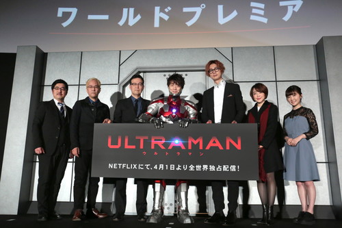 【公式HP】 本作のアニメ化を手掛けるのは、「攻殻機動隊 STAND ALONE COMPLEX」シリーズの神山健治監督と、『APPLESEED』シリーズの荒牧伸志監督。 アクターの演技をキャラクターに反映するモーションキャプチャー技術を導入した演出は、細やかな人間の感情表現からダイナミックなアクションシーンまで、これまでの作品では考えられなかった魅力的な表現を可能としています! この度、全世界配信前夜の3月31日(日)にワールドプレミアを実施しました。 神山健治監督・荒牧伸志監督をはじめ、木村良平(早田進次郎/ULTRAMAN役)、江口拓也(諸星弾/SEVEN役)、潘めぐみ(北斗星司/ACE役)、諸星すみれ(佐山レナ役)という豪華声優陣が登壇。 さらに木村良平は“ULTRAMANスーツ”姿を初披露、追加キャストとしてエースキラー役・平田広明の出演も解禁されるなど、場内は大歓声に包まれ、配信前夜のワールドプレミアにふさわしく大いに盛り上がりを見せました。 「ULTRAMNA」ワールドプレミア |