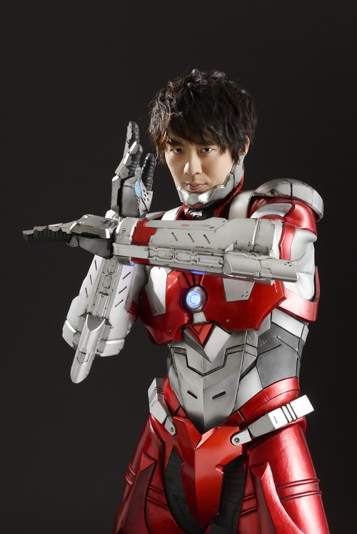 そして、ここまできて、主役の木村良平さんの姿が見えないことに少しざわつき始めると、MCが「みなさん、そわそわしていますが大丈夫です、会場に来てくれていますから!」とあおり、場内から拍手と歓声があがる中、アニメ本編内にも登場する「科学特捜隊」基地を思わせる舞台上の扉から木村さんが登場。![]() そこには、ULTRAMANスーツ姿を来た木村さんの姿があり、登場するやこの日一番の歓声が沸き起こった。場内の反応に、木村さんはセンターで決めポーズをとりながら応え、 ![]() 木村さん:『これ着ていいんですか?』という感じで…本物ですよ、これ!本物のプロが本気で作った本物のスーツを声優の身で着させてもらえるなんて、嬉しいです! ![]() と、興奮を隠しきれない様子。 潘さん:(スーツの後ろが人間の脊椎のようなデザインになっているところを見て)私、この脊椎になりたいです!スーツ姿のウルトラマンがマスクを取った状態で登場するのは初めてですよね。 荒牧監督:(木村のスーツの状態は)2話のラストの状態ですね。これでアフレコしてほしいですね(笑) と、メカデザインの第一人者でもある荒牧監督も、スーツに感心している表情を見せていた。 |